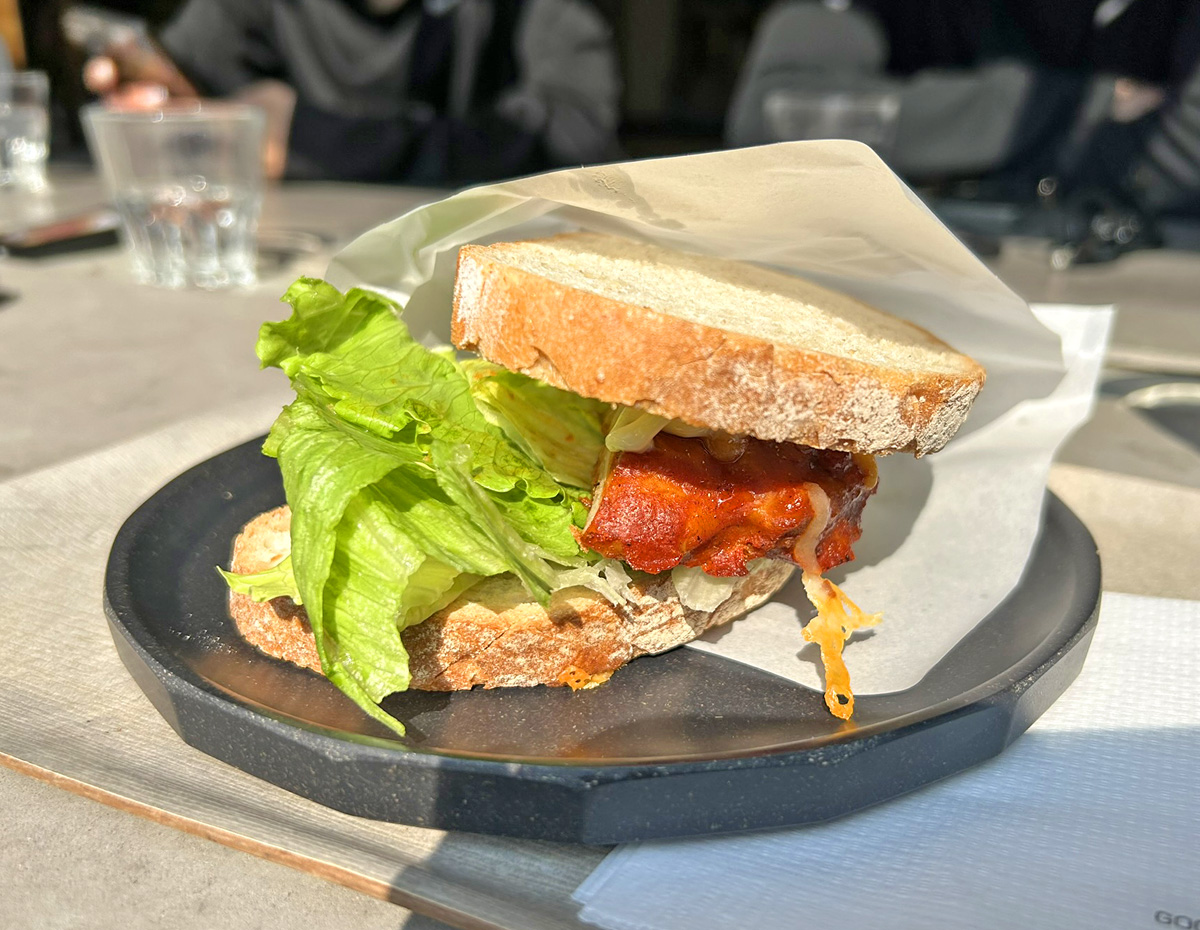 お腹が空いて仕方なかったので、朝からチーズタンドリーチキンサンドをいただきました。
