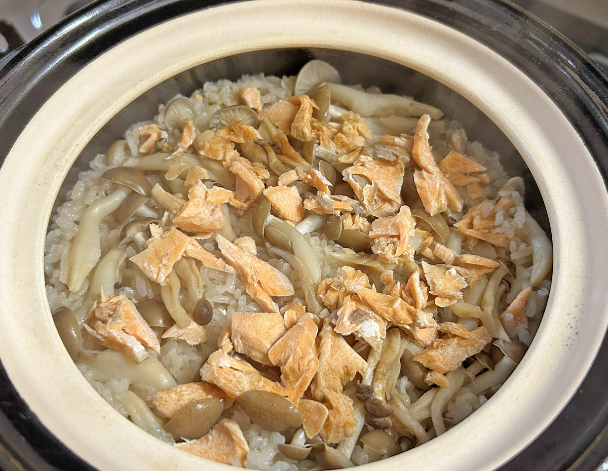 早速作ったのは、鮭としめじの炊き込みご飯。