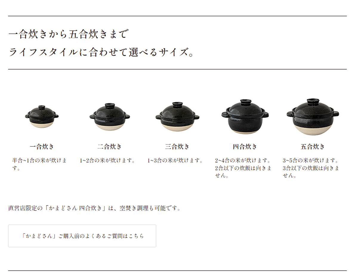 1合炊き専用~5合炊きまでバリエーションが豊富で、私は2合炊きを購入。