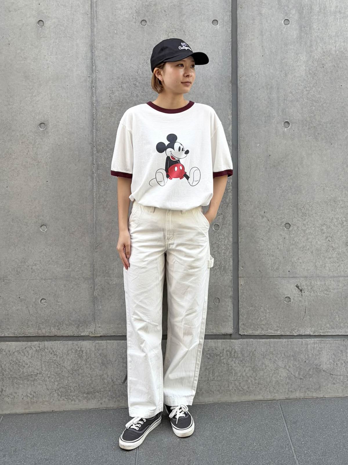 ホワイトのペインターパンツに、シンプルすぎないようキャップも合わせてコーディネートしました。