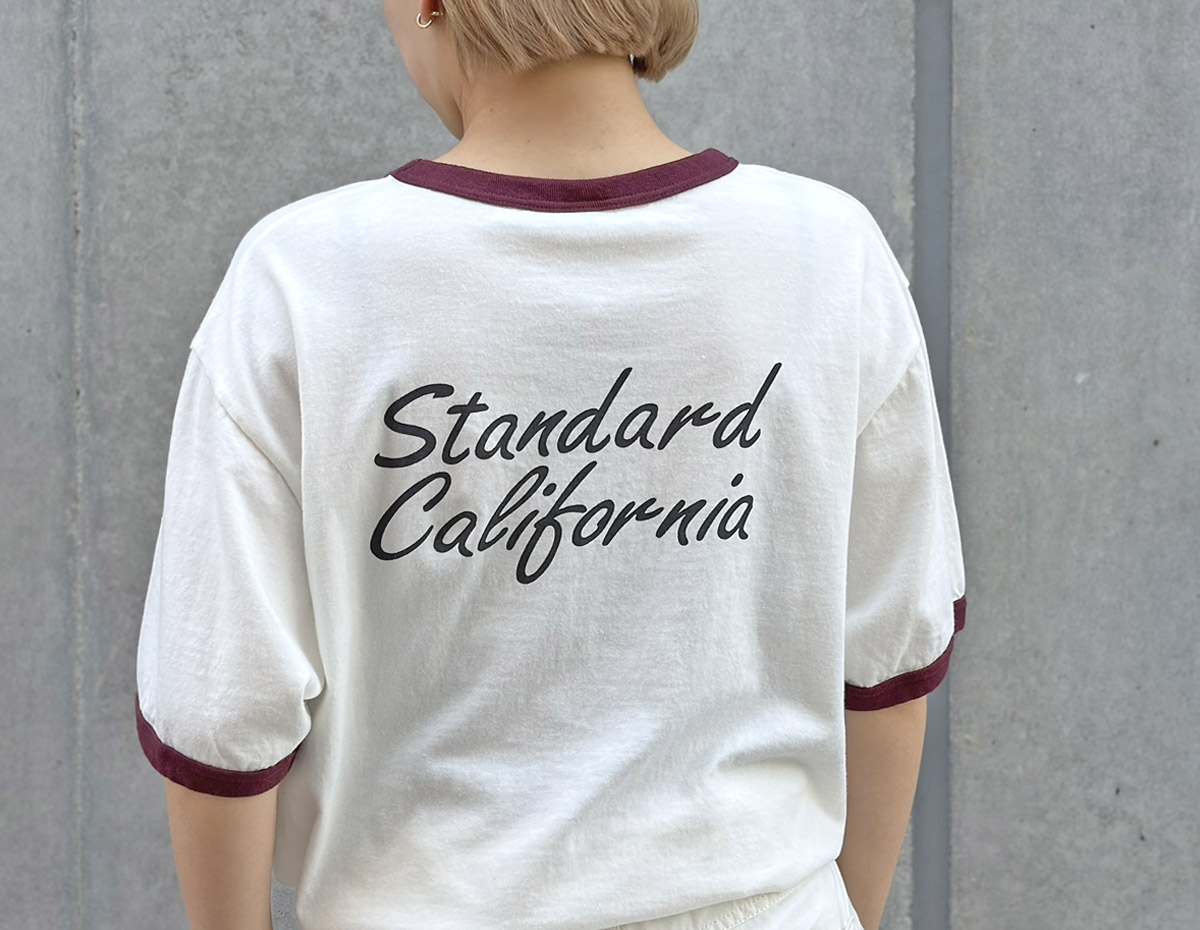 リンガー仕様で、フロントにはミッキー、バックにはStandard Californiaロゴを染み込みでプリントしています。