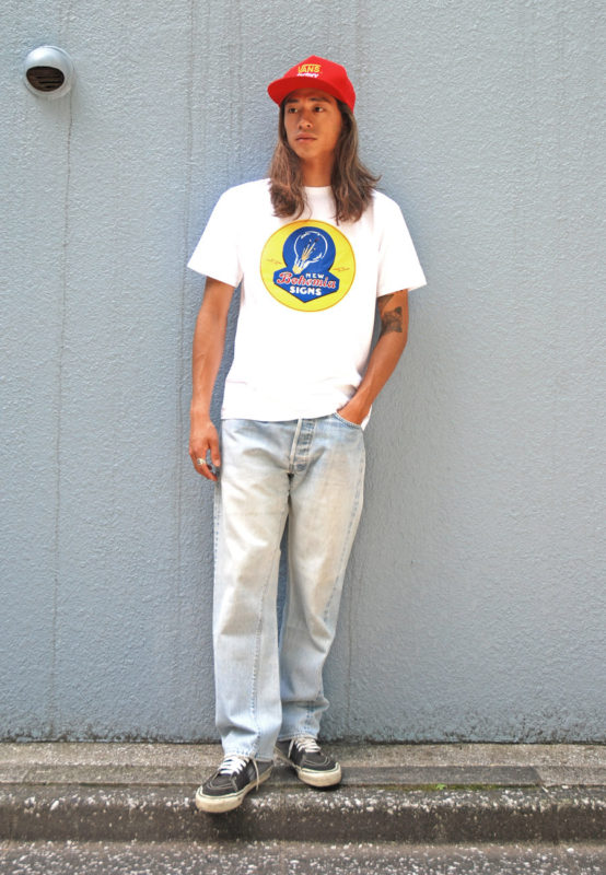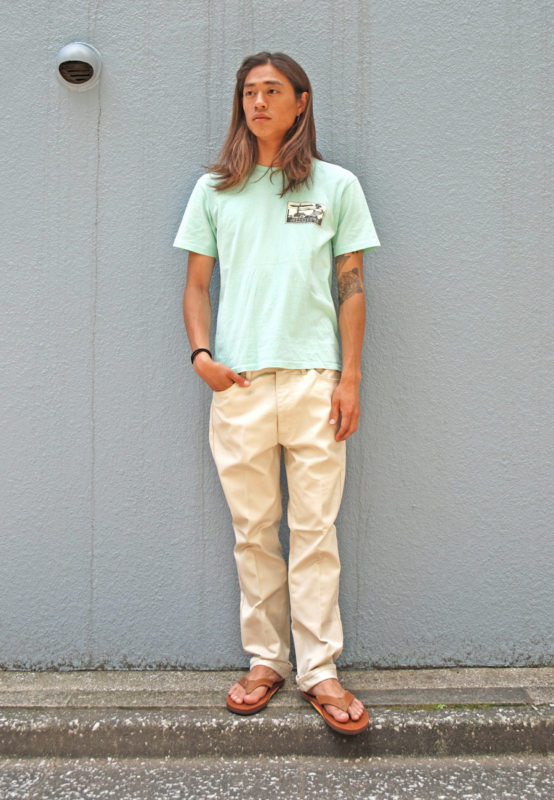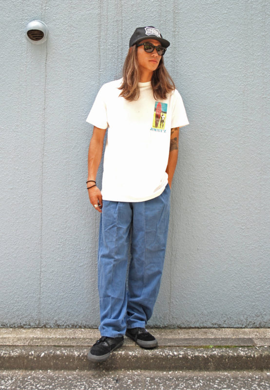 トップスには良い塩梅で色が抜けたJIMMYのTシャツを。