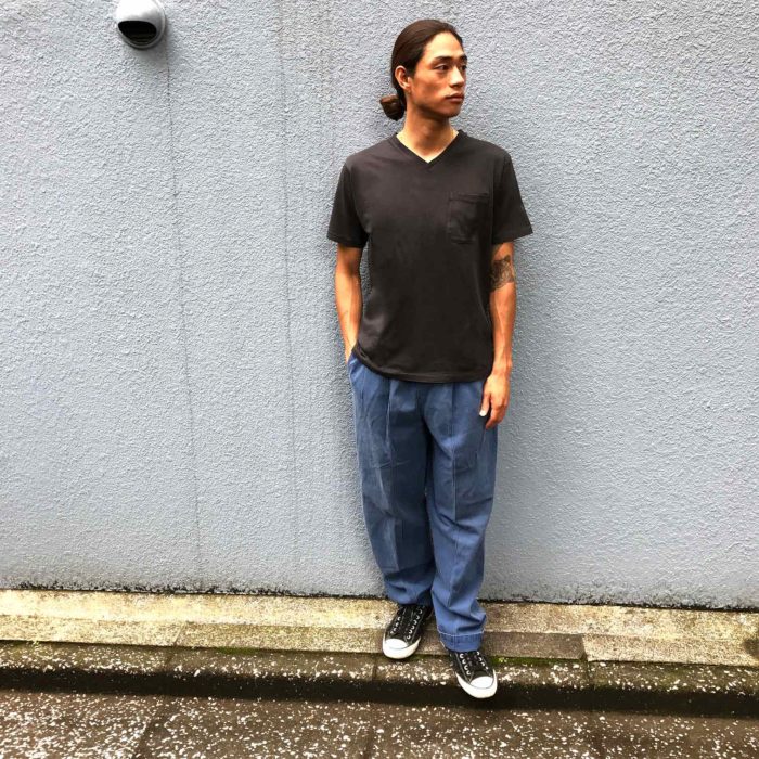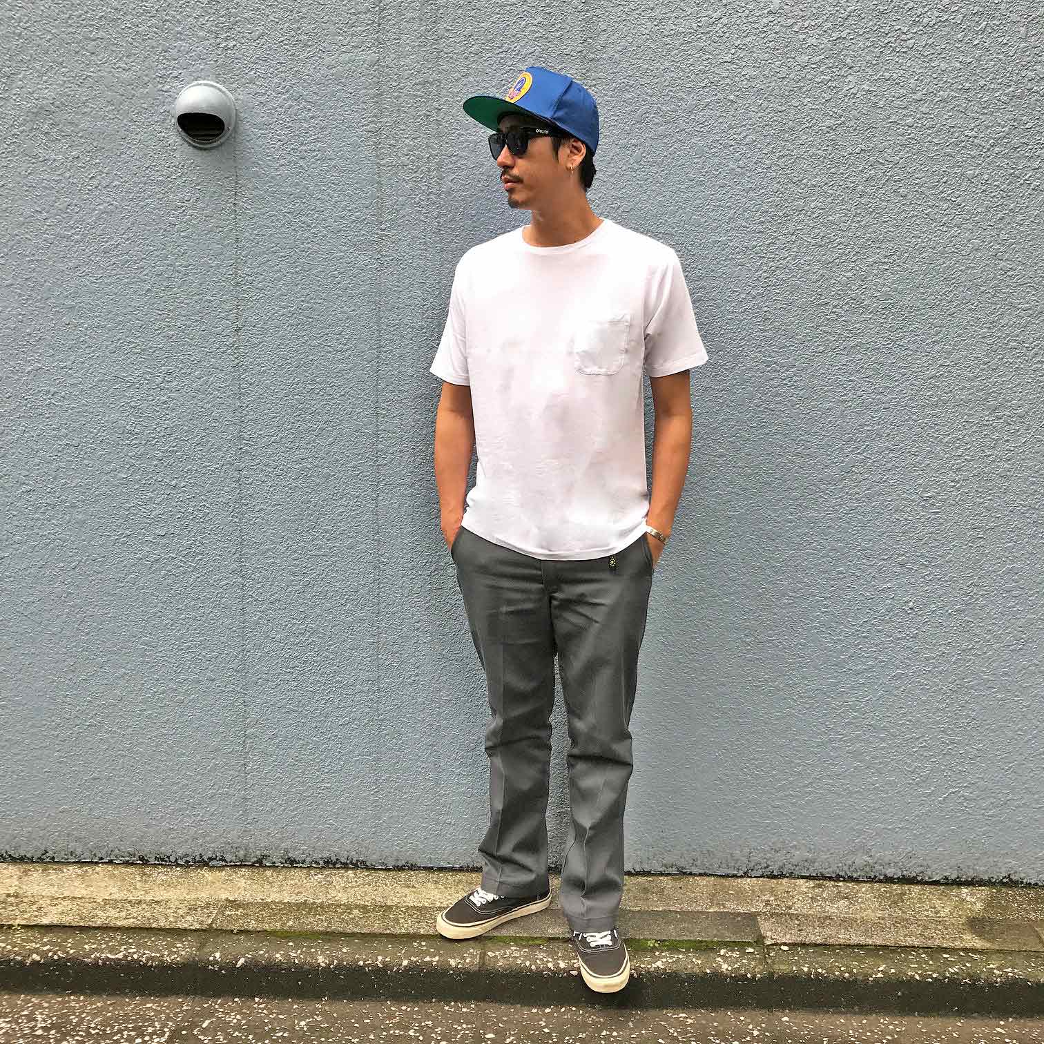 一見普通の無地Tですが、首裏にロゴを配置することで良い塩梅に存在感を主張できます。