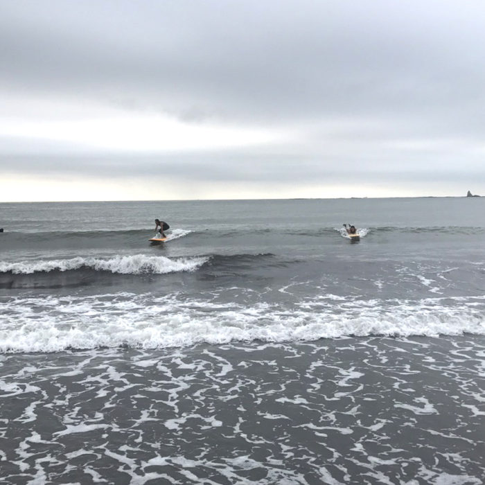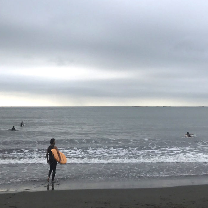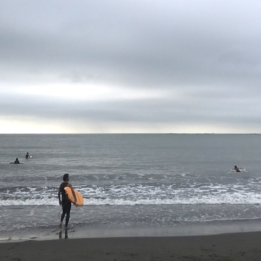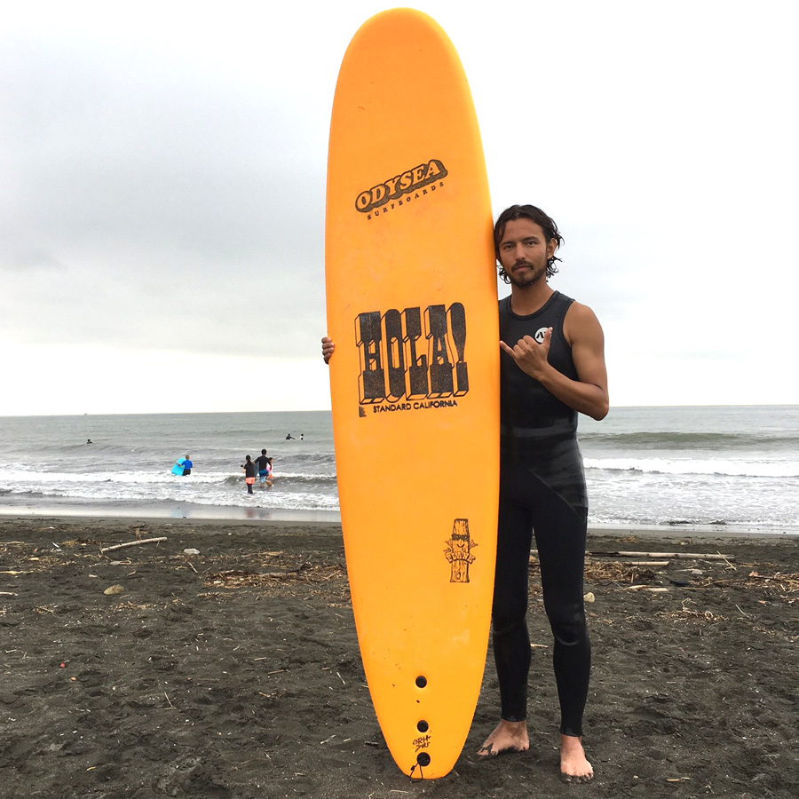モデルのパトリシオ氏と茅ヶ崎で波乗り。