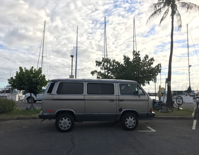 狭いオアフにもVANAGONが結構走っています。 こちらはBOWLSのパーキングで見かけたVANAGONたち。