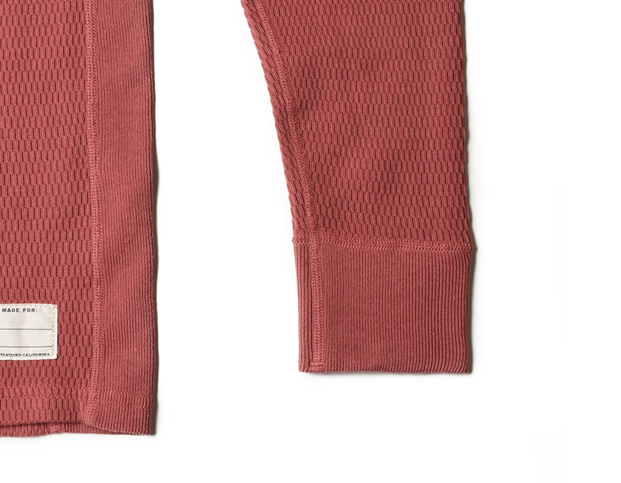ゆったりとしたシルエットなので、インナーでもトップスとしても使えるワッフルサーマル。