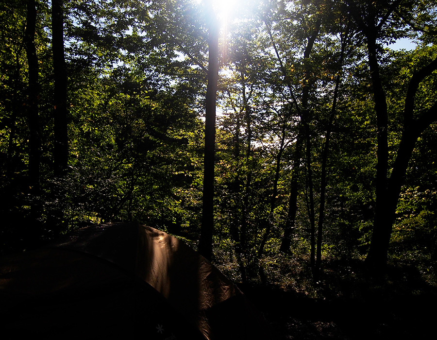 日ごろの行いが悪いのか、キャンプ場直前から雲行きが怪しくなり、テント設営後すぐに雨。