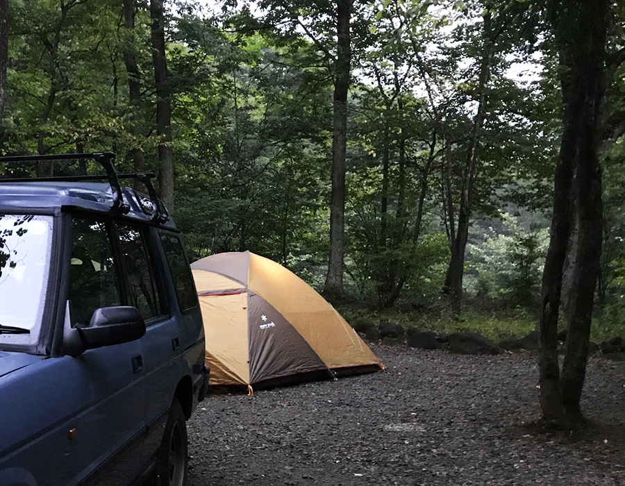 途中話し声も聞こえないぐらいの土砂降りになりましたが、このキャンプ場のサイトが優秀で、いっさい水が溜まることもなくテント内は快適でした。