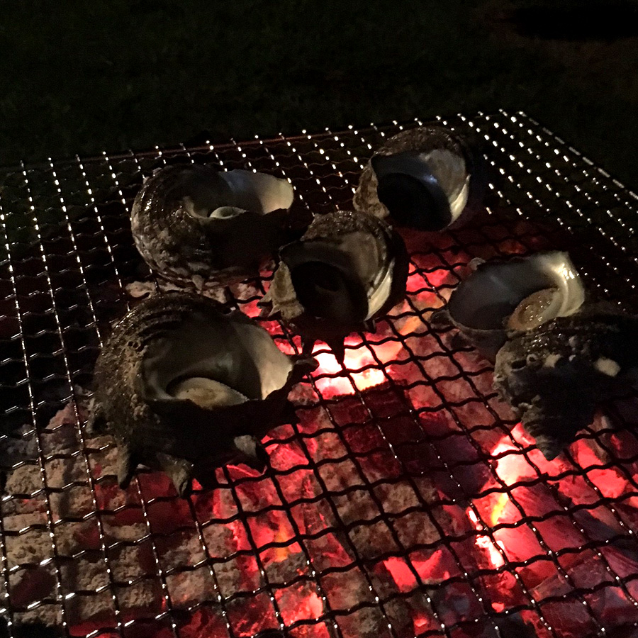 火をおこして、自分達のペースで焼き物、虫の音を聞きながら酒を飲む。