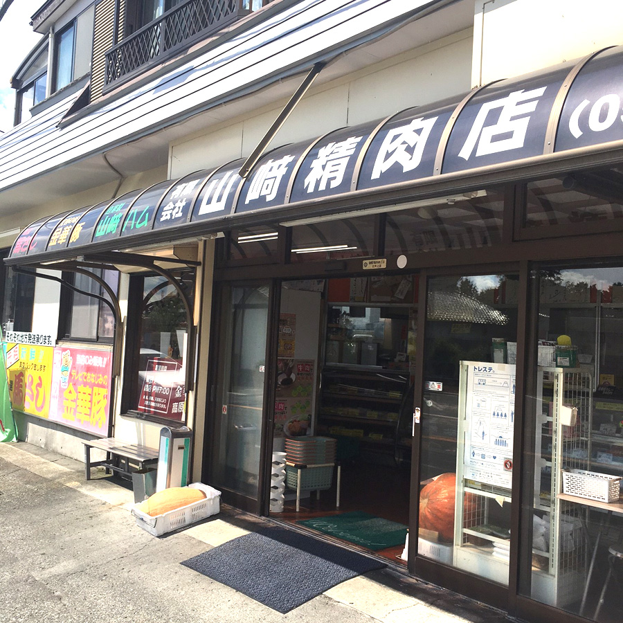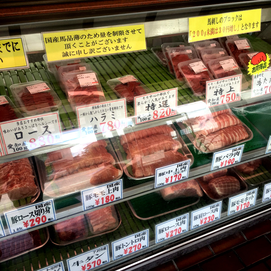 車で向かったのは、これまた近所の馬刺しで有名な山﨑精肉店。これを食べたくてキャンプ場をきめたようなもの。無事ゲット。