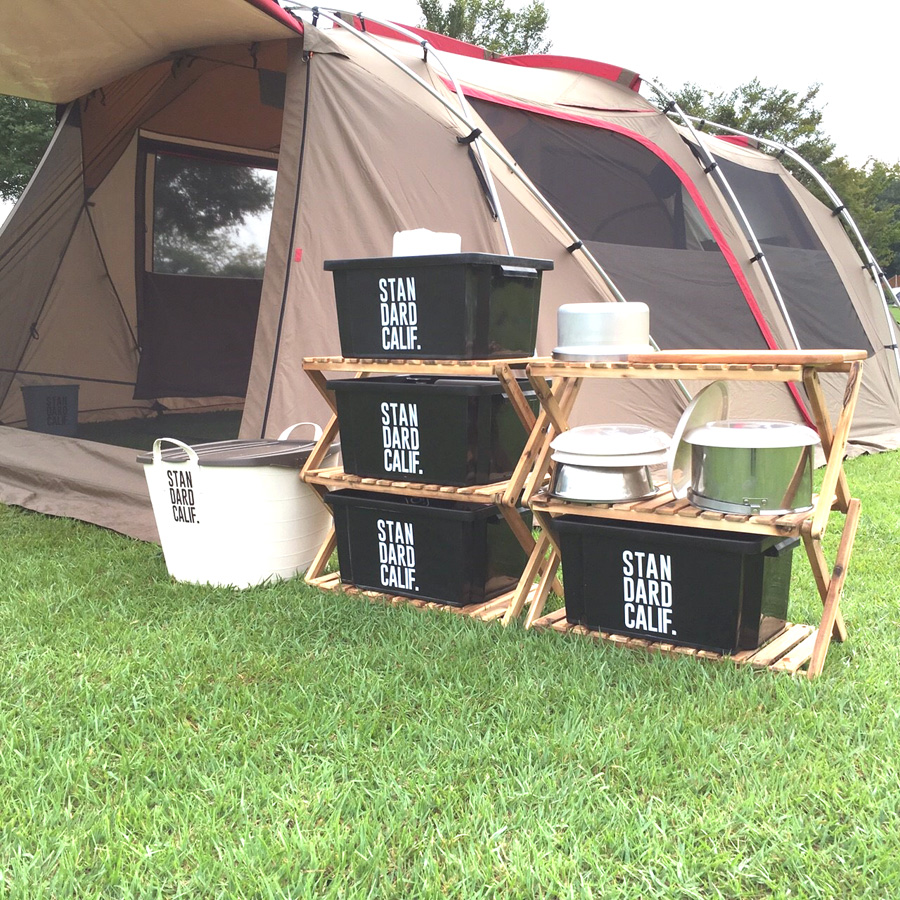 今回のコンテナ。キャンプ用の棚とサイズばっちり。なんだかんだ物が多いキャンプでは、かなり重宝しました。