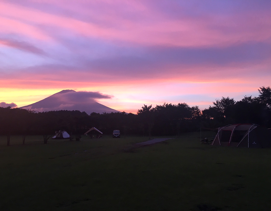 まずはキャンプ。富士山が見える芝がきれいなフリーサイト。