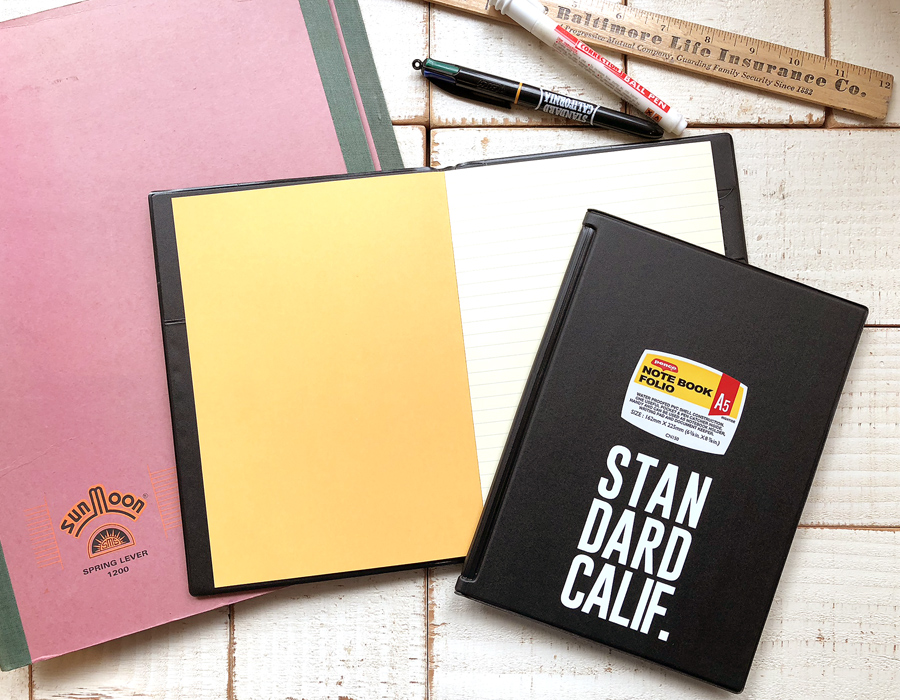 立ったままでも書き込みやすいハードカバーのノートパッド。