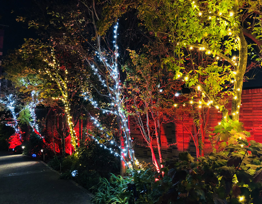 ツリーのイルミネーションなど温かみのある雰囲気が良い感じ。