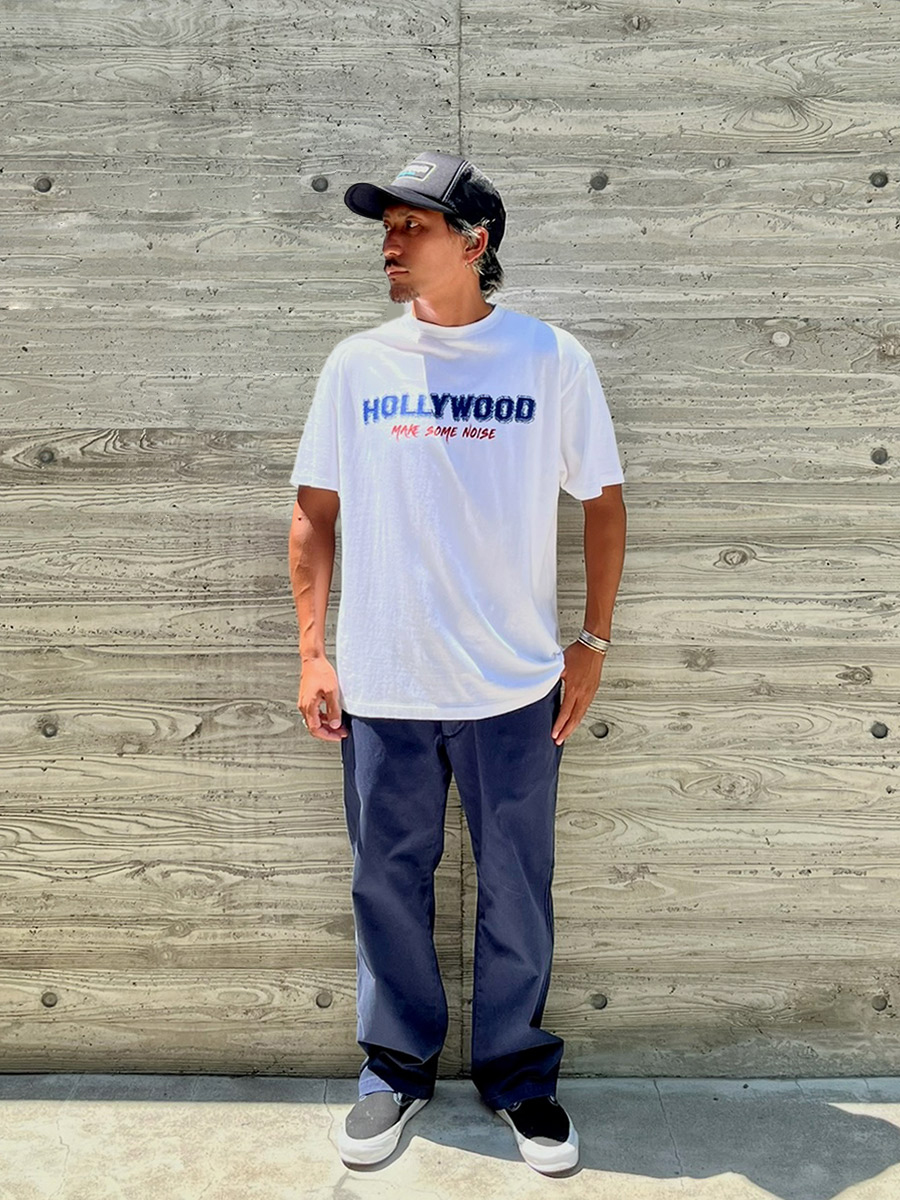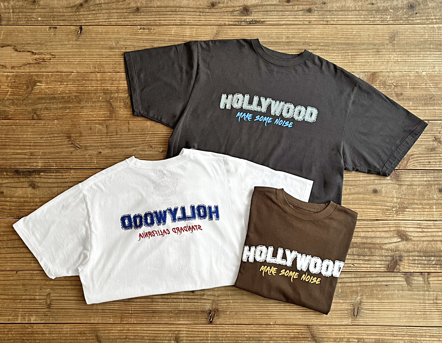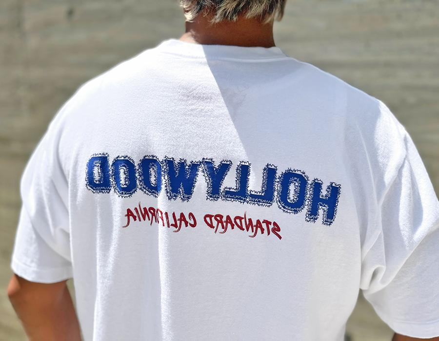 フロントにはHOLLYWOODとシーズンテーマ、バックにはHOLLYWOODサインとStandard Californiaロゴを裏から見たイメージで落とし込んだ遊び心のあるデザインです。