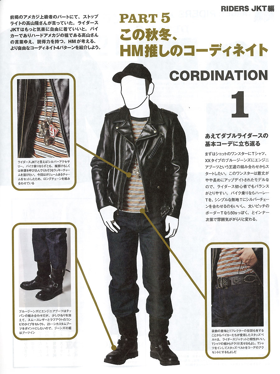 「PART6 ギアアウターとしてのライダースJKTカタログ」にて