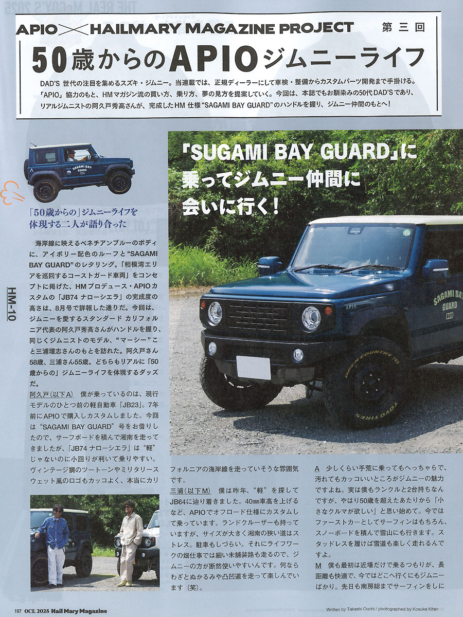 P166、167「APIO×HM MAGAZINE PRO JECT50歳からのAPIOジムニーライフ」