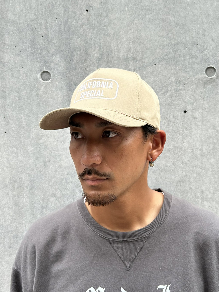 先ほどと同じく被りやすい深さのツイルキャップをベースに、ヴィンテージのパッチをイメージした「CALIFORNIA SPECIAL」のワードをそれぞれ刺繍しました。