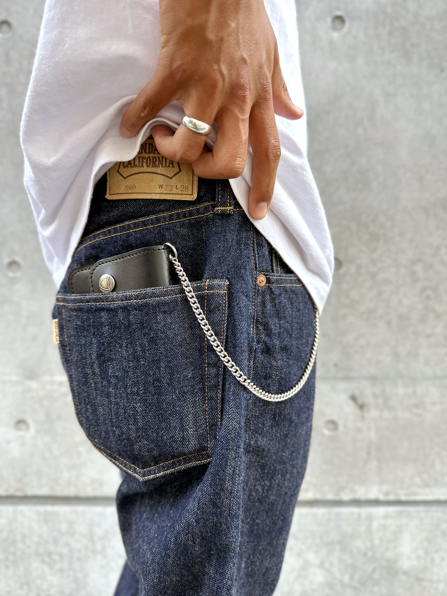 今回入荷したのはシンプルなプレーンのウォレットに、ナスカンを組み合わせたチェーンが付属するバイカーウォレット。