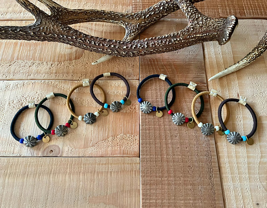 ヘアゴムとしてはもちろん、アクセサリー感覚で腕に着けてもいいですね。