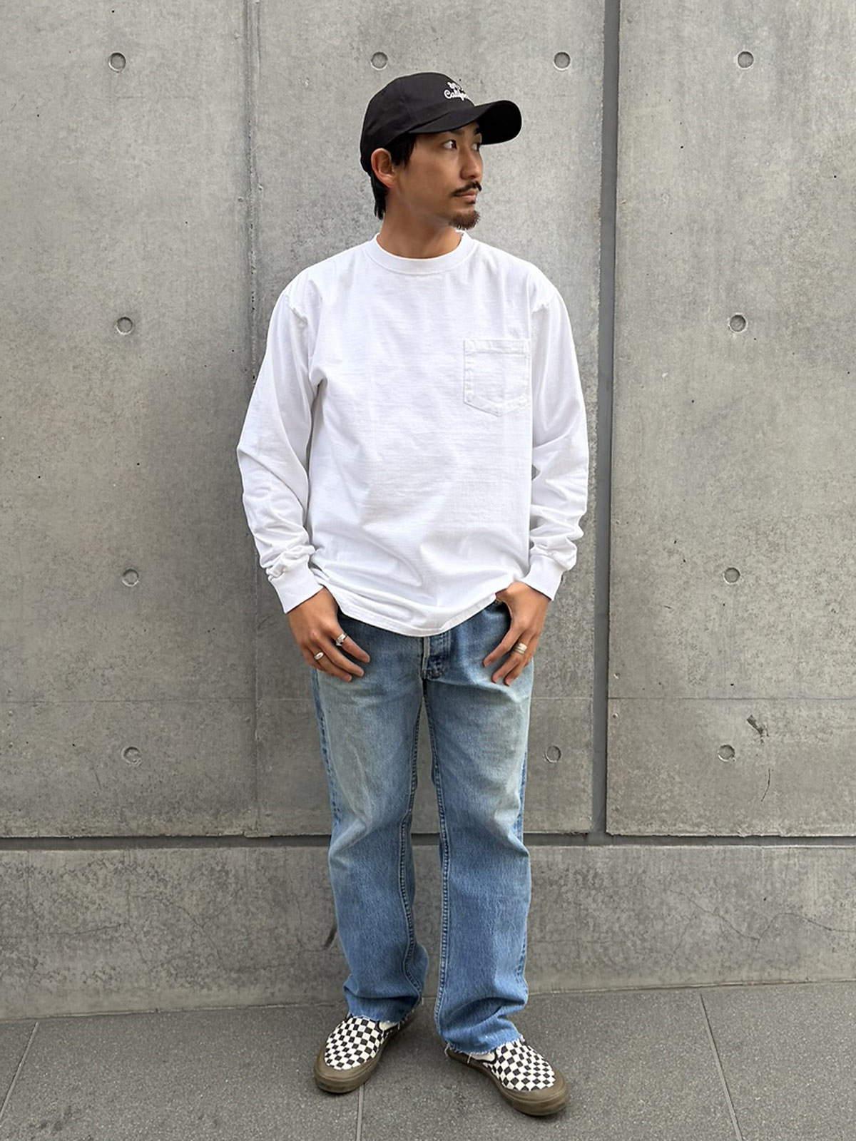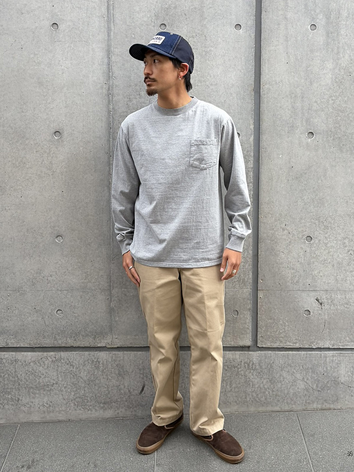 肉厚でドライタッチな質感にファンも多いヘビーウェイトポケットのロングスリーブTシャツ。