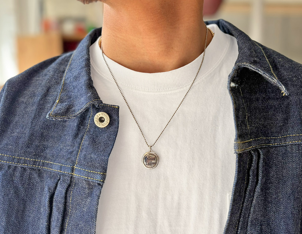 デッドストックのボタンをシルバー925で枠組したButton Worksでも人気のネックレスシリーズをベースに、Standard Californiaのオリジナルボタンに変更した別注モデル。