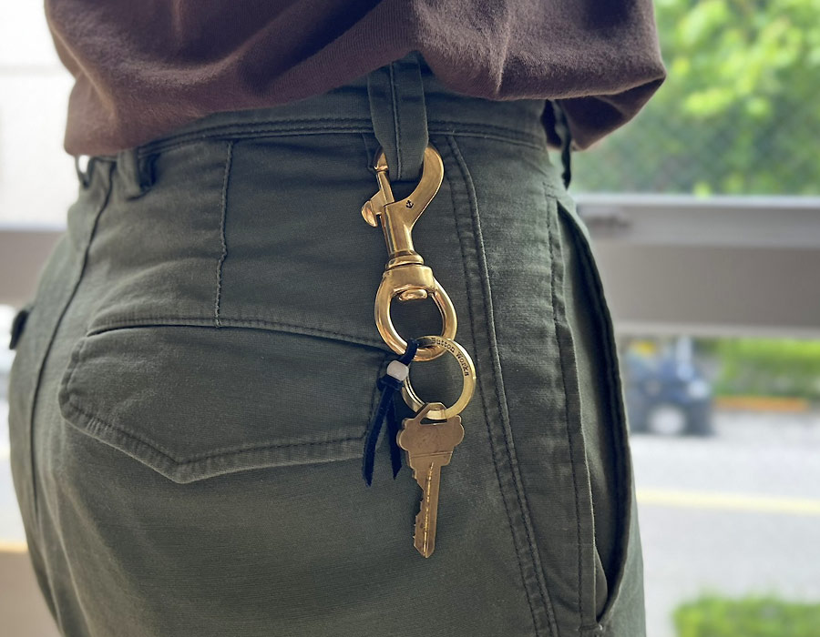 まずはButton Works オリジナルのカラビナとシャックルを組み合わせたキーホルダー。
