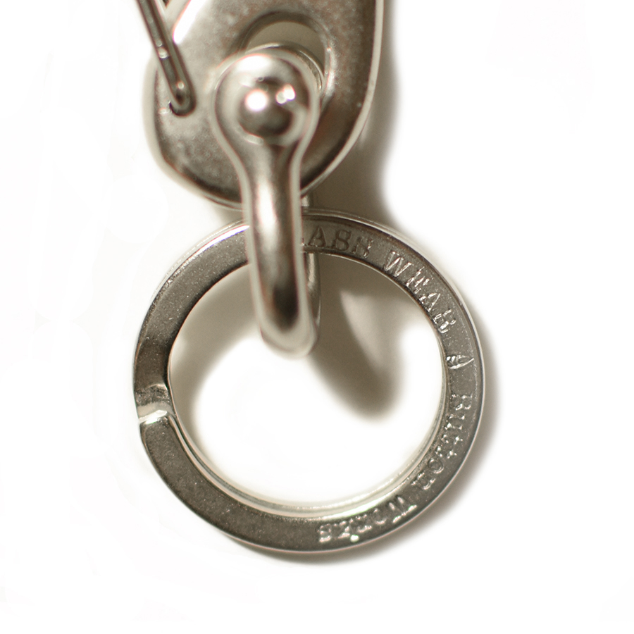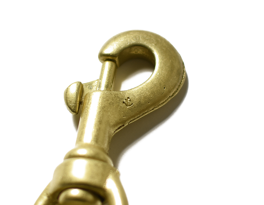 ナスカンとリングには手打ちで色墨の入ったアンカーマークと文字を刻印。