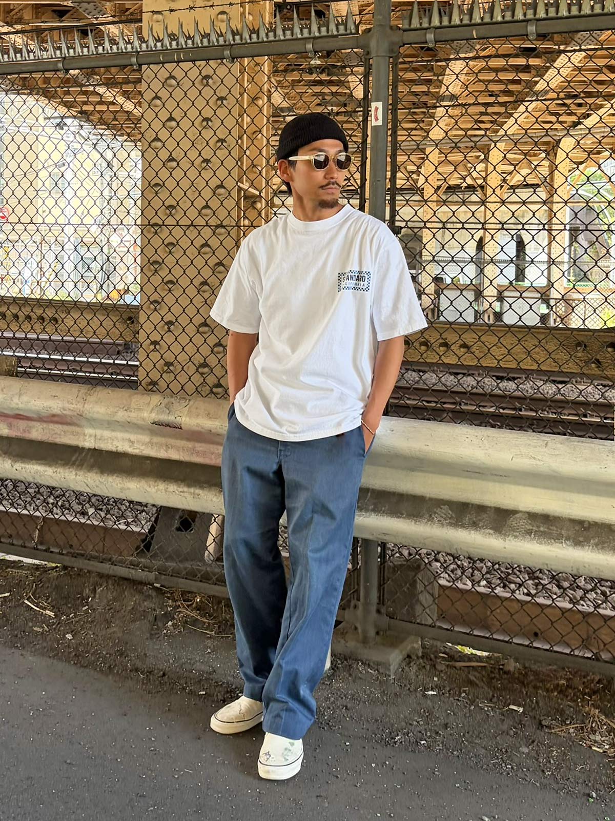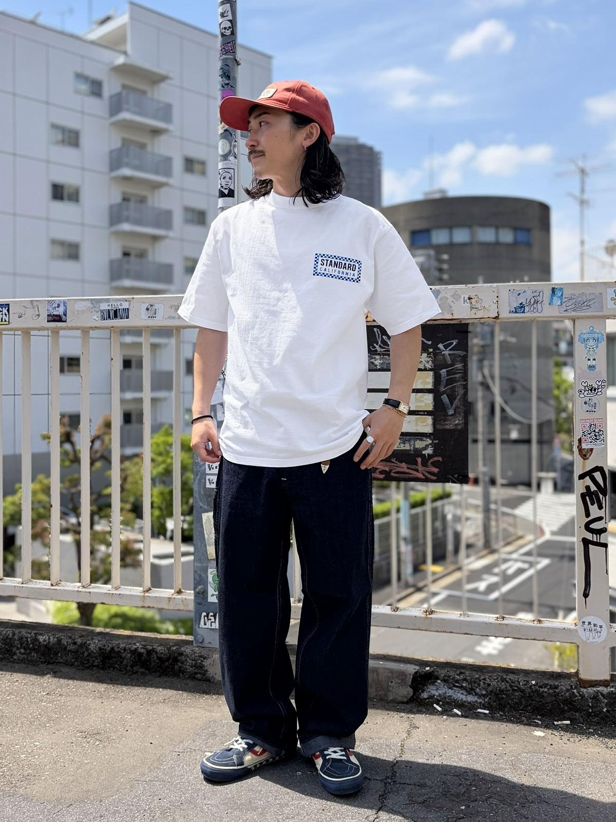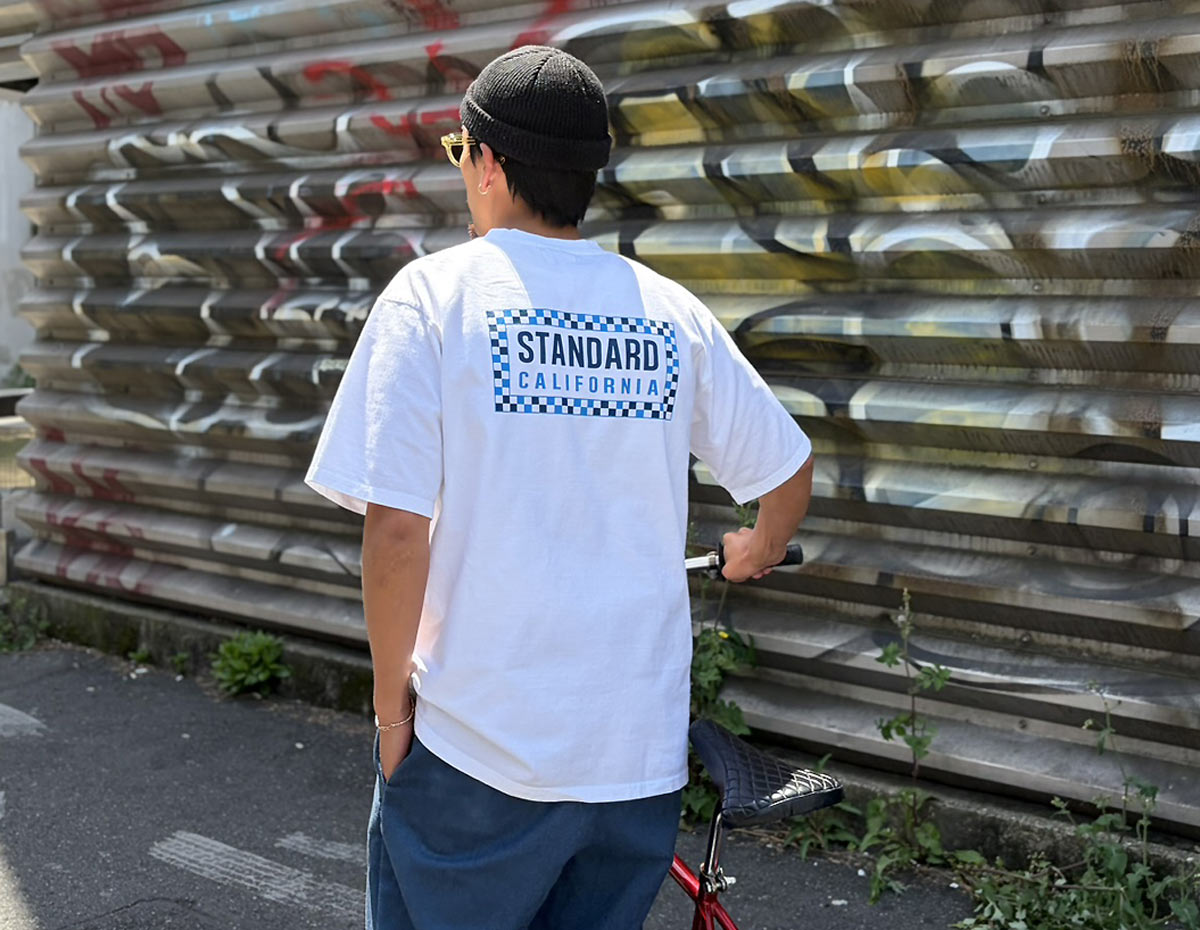 今までは単色カラーでしたが、今回は2トーンのチェッカーデザインを配したStandard Californiaロゴをフロントとバックにラバープリント。