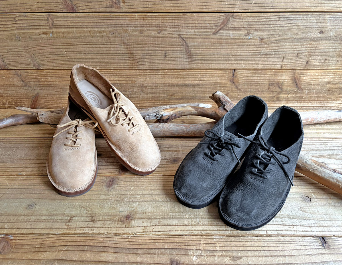 今回はシングルソール、ダブルソール、モカシューの3ラインナップ。